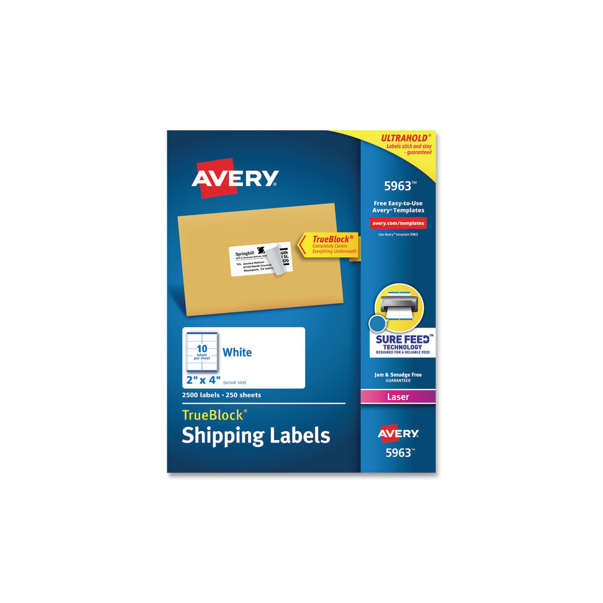 Shipping Labels w/ TrueBlock Technology, Laser Printers, 2 x 4, White, 10/Sheet, 250 Sheets/Box