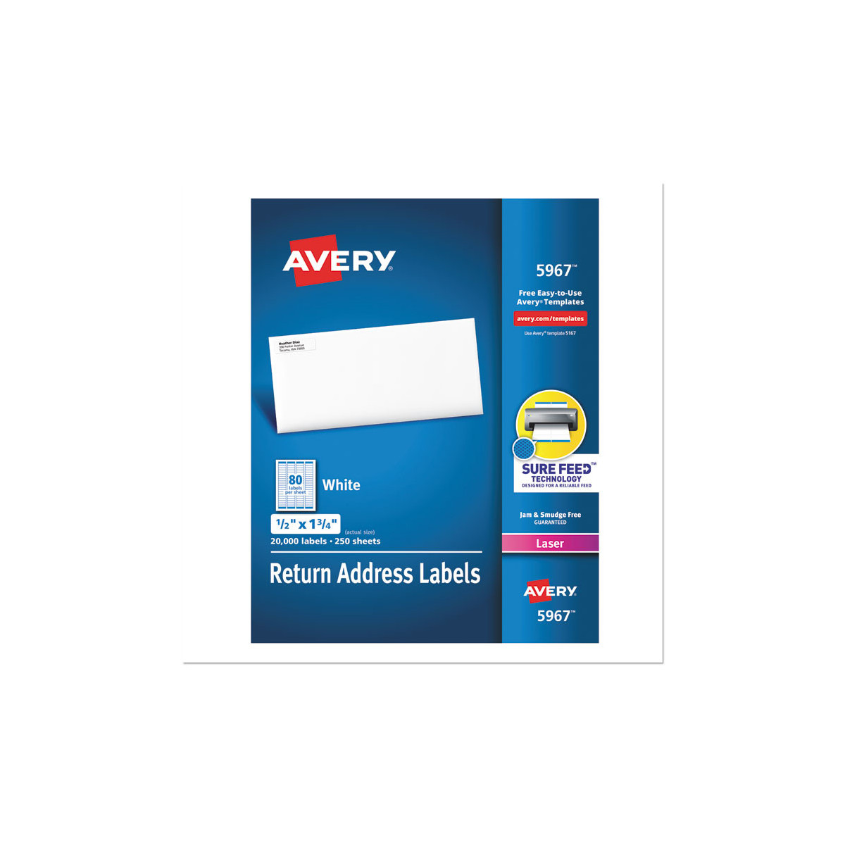 White Address Labels w/ Sure Feed Technology for Laser Printers, Laser Printers, 0.5 x 1.75, White, 80/Sheet, 250 Sheets/Box