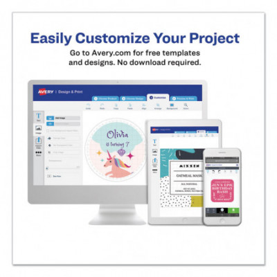 Customize labels with attention-getting images; make your most important messages stand out with high-visibility color labels. Ideal for announcements, priority messages, identification and more! Easy to customize with free templates from Avery® Design & Print. 8.5" x 11" sheets.