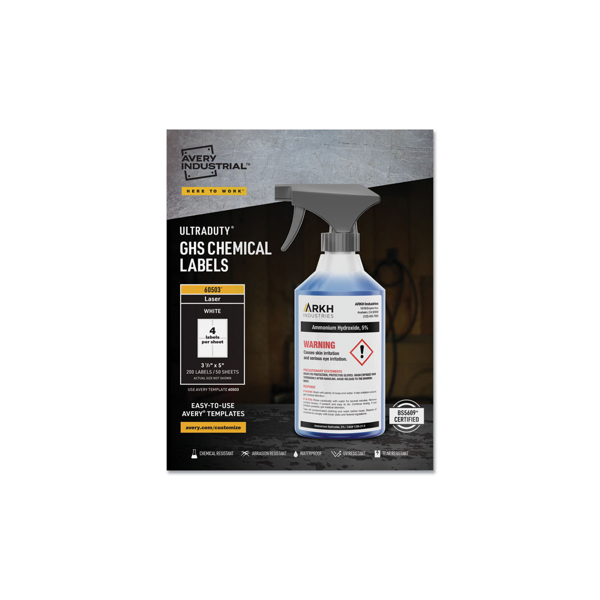 UltraDuty GHS Chemical Waterproof and UV Resistant Labels, 3.5 x 5, White, 4/Sheet, 50 Sheets/Box