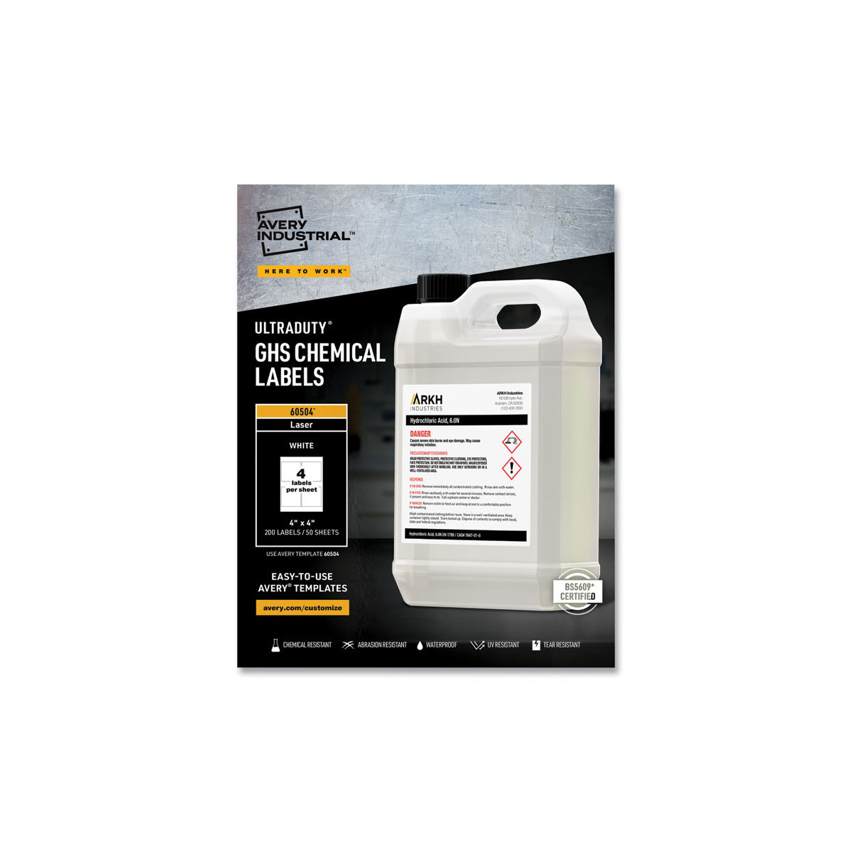 UltraDuty GHS Chemical Waterproof and UV Resistant Labels, 4 x 4, White, 4/Sheet, 50 Sheets/Box