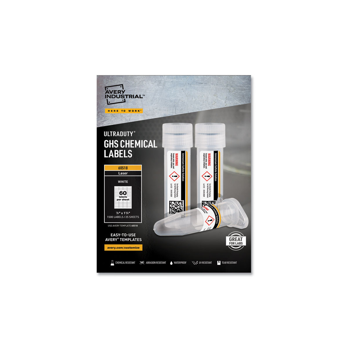 UltraDuty GHS Chemical Waterproof and UV Resistant Labels, 0.5 x 1.75, White, 60/Sheet, 25 Sheets/Pack