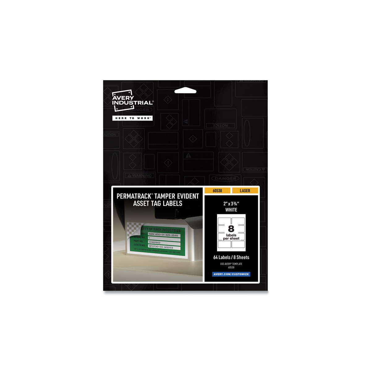 Create your own industrial asset tags, barcode labels, equipment tags, property tags and nameplates with a laser printer. Accurately record and monitor valuable assets such as electronics, equipment, tools, furniture, containers and more. Print on demand and as many as you need, avoiding high minimum order quantities and long lead times. Discourage theft or tampering—after allowing 24 hours for the label to set, once lifted, labels leave behind a checkered-pattern layer and cannot be reapplied. Durable material is chemical resistant, tear resistant and waterproof. Customize with text, graphics, serialized numbers and barcodes with the free Avery Design & Print software with barcode generator.