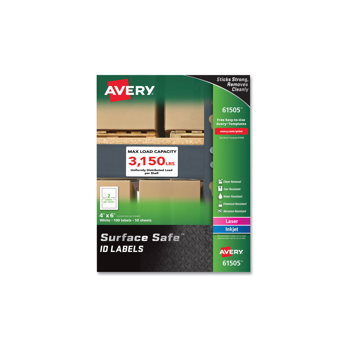 Surface Safe ID Labels, 4 x 6, White, 2/Sheet, 50 Sheets/Box