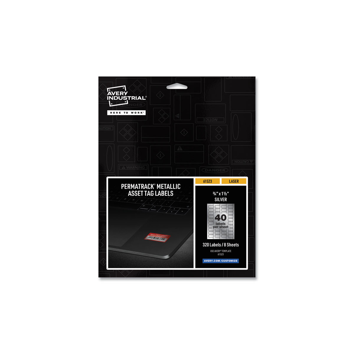 PermaTrack Metallic Asset Tag Labels, Laser Printers, 0.75 x 1.5, Metallic Silver, 40/Sheet, 8 Sheets/Pack