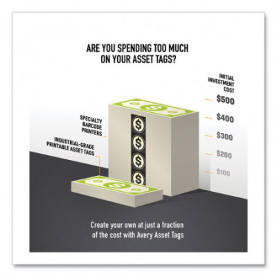 Create your own heavy duty metallic asset tags, barcode labels, equipment tags, property tags and nameplates with a laser printer. Accurately record and monitor valuable assets such as electronics, equipment, tools, furniture, containers and more. Print on demand and as many as you need, avoiding high minimum order quantities and long lead times. Labels feature a strong adhesive and the durable metallic material is chemical resistant, waterproof and abrasion resistant. Customize with text, graphics, serialized numbers and barcodes with the free Avery Design & Print software with barcode generator.