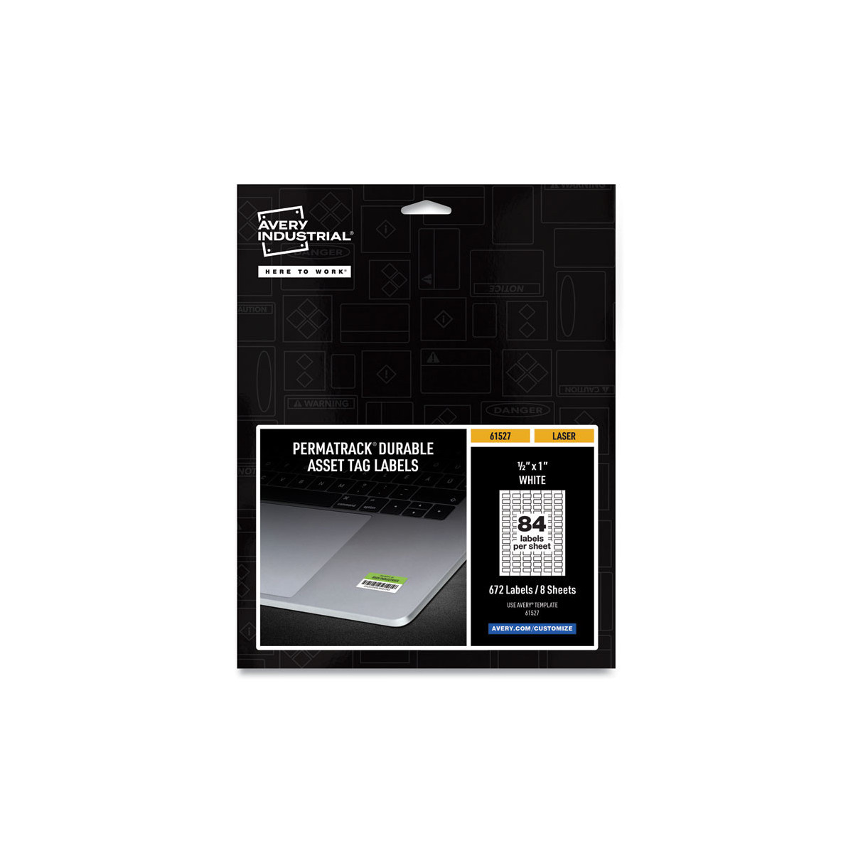 PermaTrack Durable White Asset Tag Labels, Laser Printers, 0.5 x 1, White, 84/Sheet, 8 Sheets/Pack