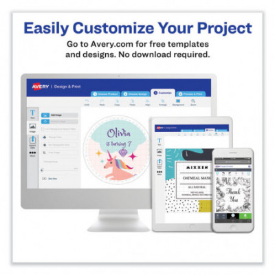 Labels stick, stay and remove cleanly without leaving a residue! Ideal for containers, boxes, shelves and more. Adheres to smooth surfaces including paper, cardboard, plastic, wood, glass and metal. Easy to customize using free Avery® designs and templates. For laser and inkjet printers.