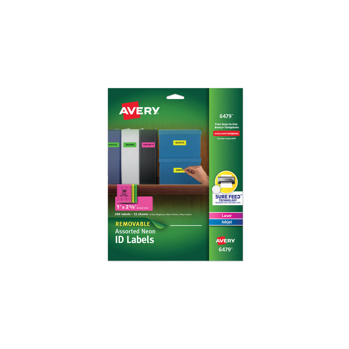 High-Vis Removable Laser/Inkjet ID Labels w/ Sure Feed, 1 x 2.63, Neon, 360/PK