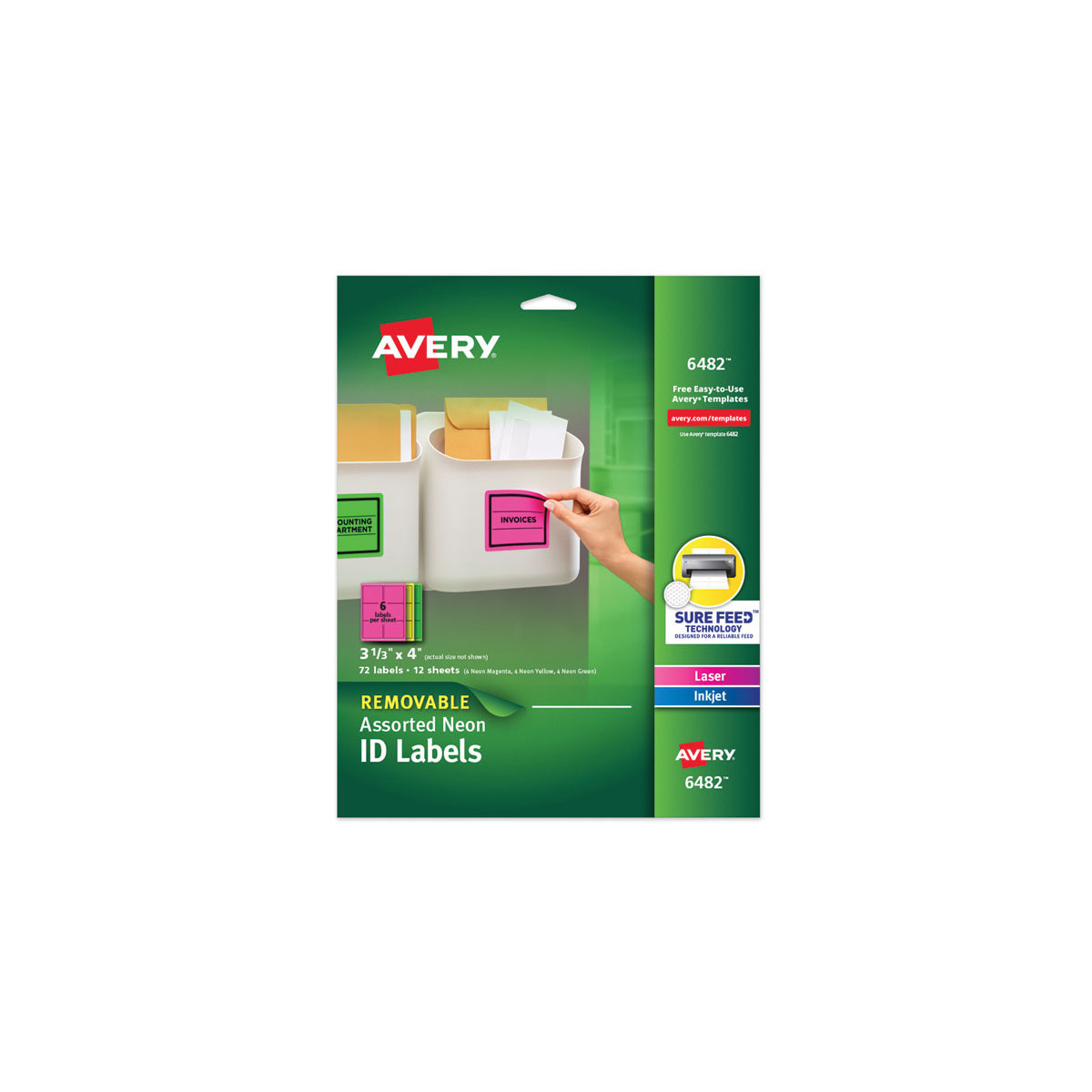 High-Vis Removable Laser/Inkjet ID Labels w/ Sure Feed, 3.33 x 4, Neon, 72/PK