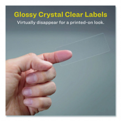 High-gloss clear labels provide a premium, custom-printed look. Ideal for bright colored surfaces. Easy Peel® label sheets bend to expose Pop-Up Edge® for fast peeling. Easy to customize with free templates and designs at Avery Design & Print. Permanent labels are guaranteed to stick and stay. 8 1/2" x 11" sheets for laser and inkjet printers.
