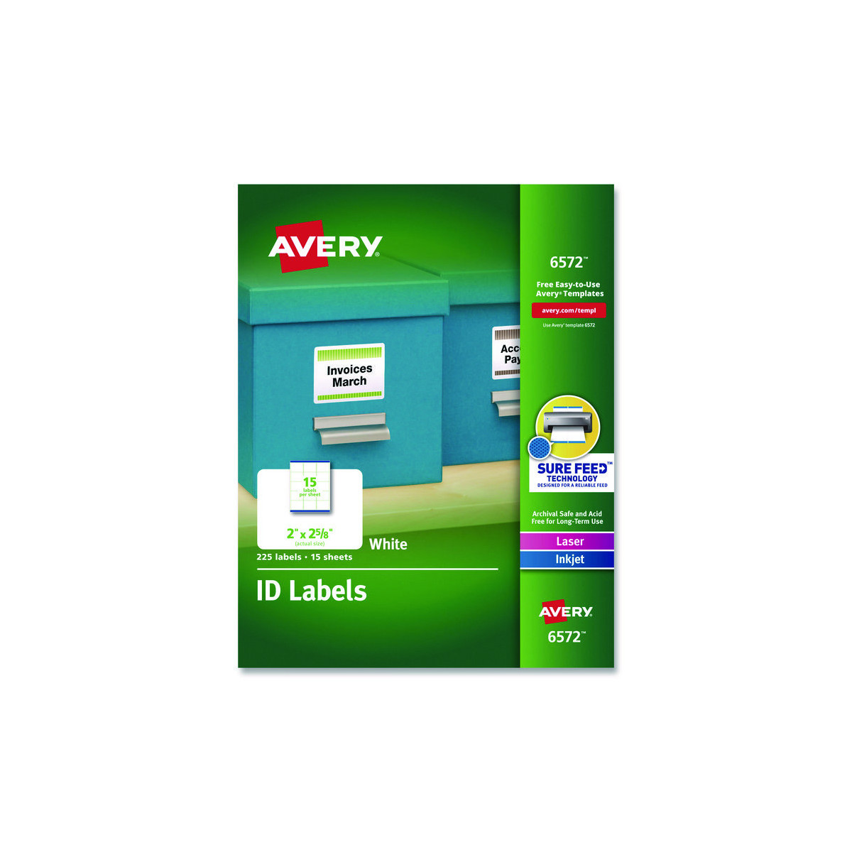 Permanent ID Labels w/ Sure Feed Technology, Inkjet/Laser Printers, 2 x 2.63, White, 15/Sheet, 15 Sheets/Pack