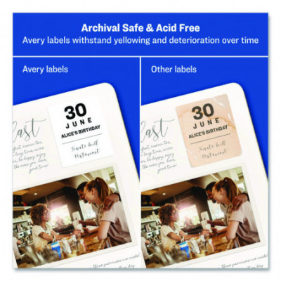 Need something strong enough to resist extreme conditions? These permanent ID labels identify equipment, stored items and belongings with strength to spare. What's the secret to their tenacity? It's a combination of acid-free, archival-safe construction and stick-and-stay durability. Adding names, barcodes and information isn't tough at all. Just complete a free template from Avery® Design & Print and print with a laser or inkjet printer. When you're looking for a sturdy label, these are hard to resist. Sure Feed® technology ensures reliable printer feed through.