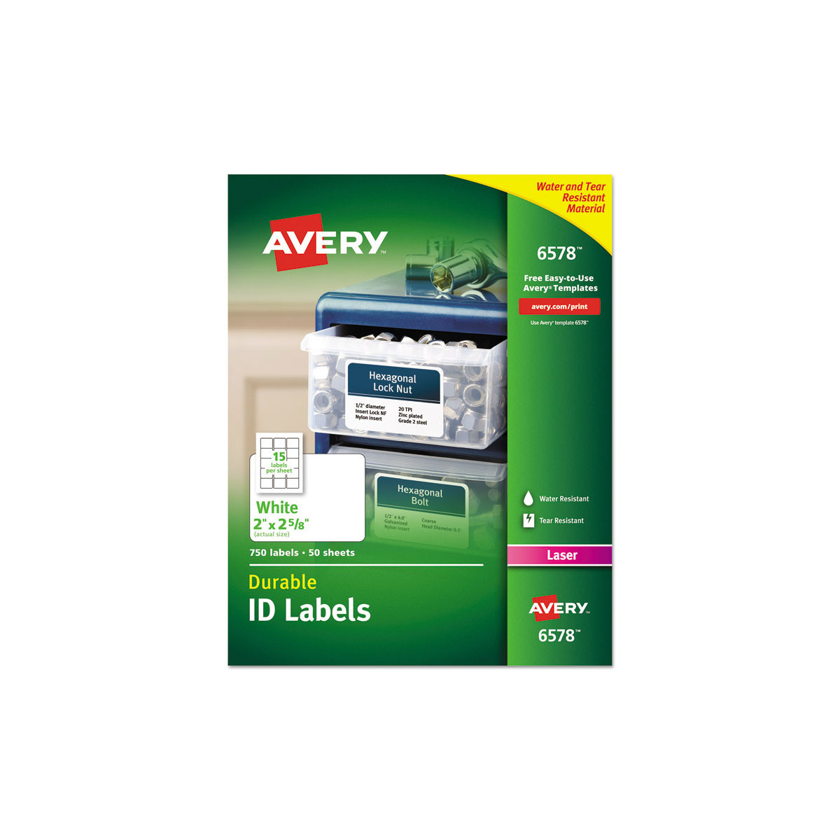 These white permanent durable ID labels with TrueBlock® technology will make ownership of office supplies clear. The TrueBlock® Technology completely covers everything underneath, so you can re-identify items with ease. You can customize the labels for just about any use with free templates from Avery® Design & Print. Print labels from your laser printer with sharp text and adhere them to paper, glass, plastic, metal and more. And since they resist moisture, scuffing, tearing and smudging, these labels always look good.