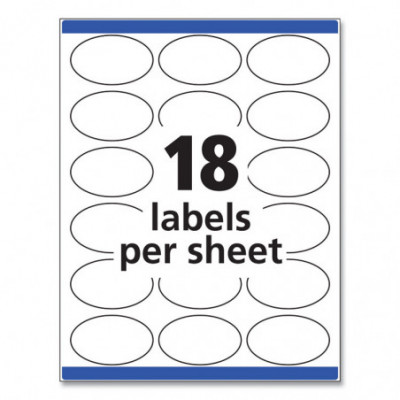 Oval Print-to-the-Edge Labels, 1.5 x 2.5, White, 18/Sheet, 15 Sheets/Pack
