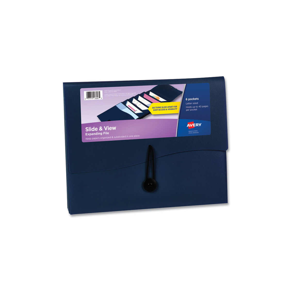 Slide and View Expanding File, 6 Sections, Hook/Loop Closure, Letter Size, Navy Blue