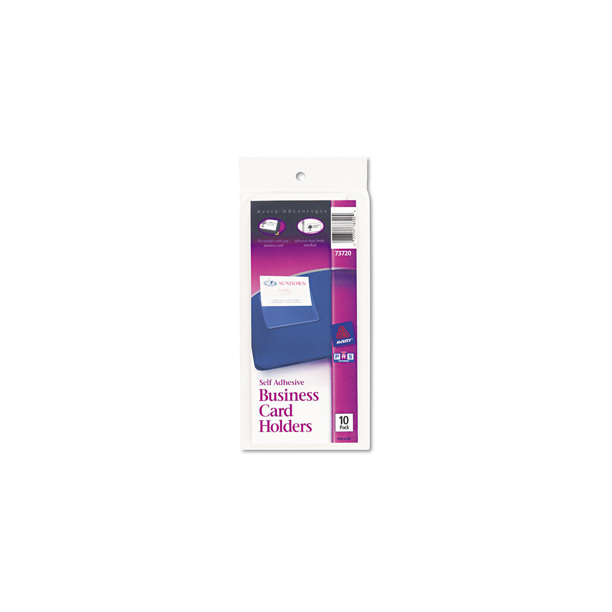 Use your own business card to personalize presentations, reports, folders, binders and more. Just peel off the backing and apply. Permanent adhesive will not slip off surface. Cards are inserted from the top and can be removed easily. Holds 3 1/2" x 2" business cards.