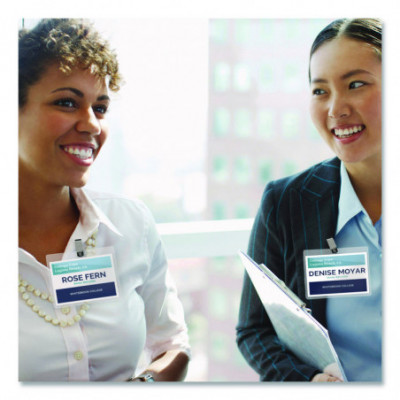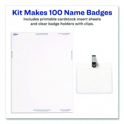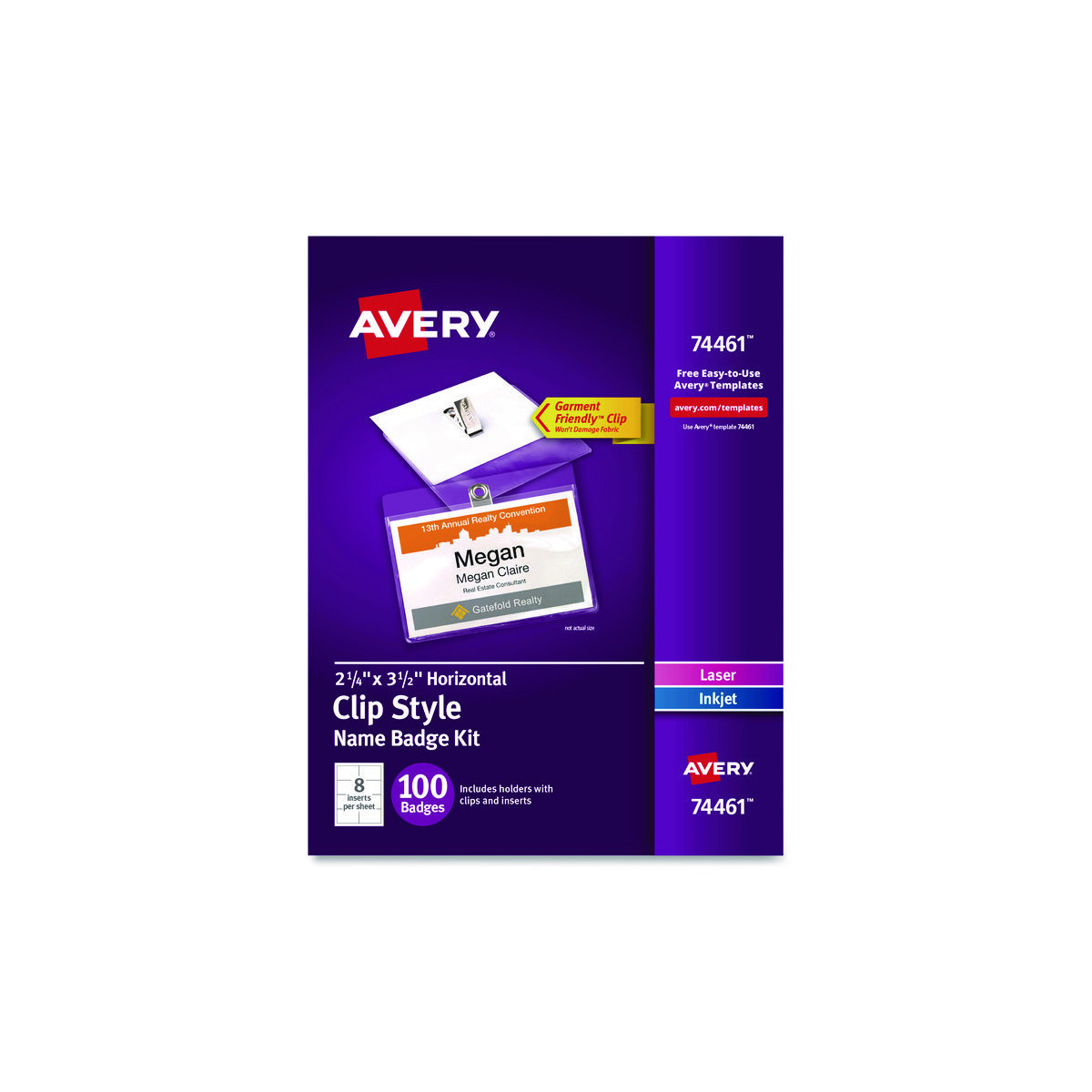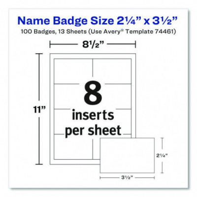 These badges feature a durable, easy-to-load, open top, pocket-style design. White micro-perforated name badge inserts are printable on both sides and separate cleanly leaving smooth edges. Create badges with text and colorful graphics using free designs and templates with Avery® Design & Print. Plastic holder is reusable and displays names clearly. 8.5 x 11 sheets for laser and inkjet printers.