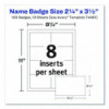 Durable plastic badges have an easy-to-load pocket-style design and are reusable. Displays names clearly. Micro-perforated inserts are printable on both sides and separate cleanly. Customize using Avery® Design & Print. 8.5 x 11 sheets for laser and inkjet printers.