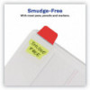Durable, repositionable and reusable tabs are writable on both sides with a clear adhesive body so you can see text underneath. Tabs stick securely and remove cleanly with no residue. Write on tab and body.