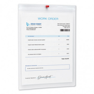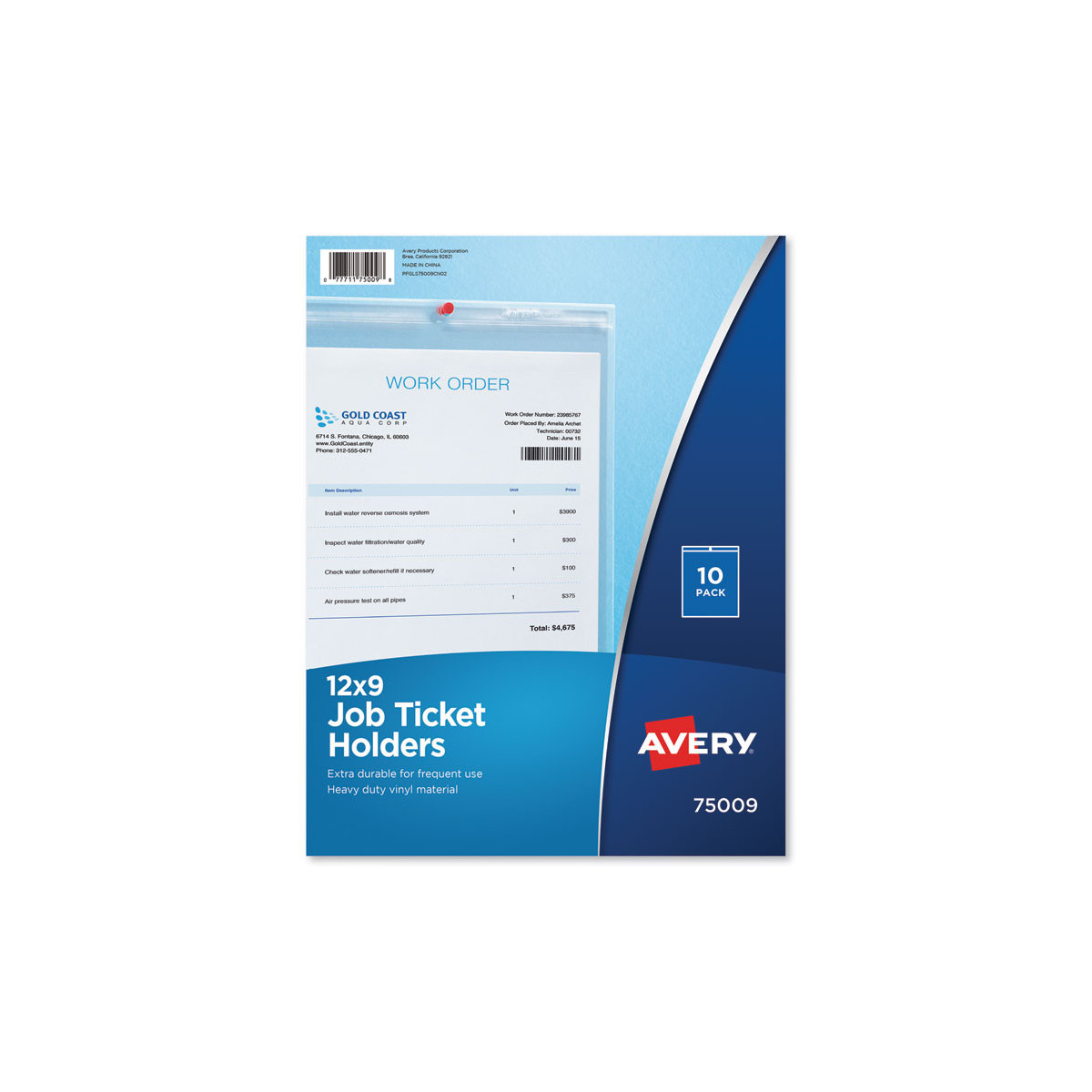 Your job tickets let you keep track of your progress on a task. Use Job Ticket Holders to ensure that this important information stays close at hand and free from damage. Other documents related to the tasks can be kept with the job ticket in one convenient place. The heavy-duty vinyl material provides protection against tears, spills and other damage as your firm makes progress on the assignment. A convenient hole at the top facilitates hanging, so you can avoid misplacement and keep the job ticket at eye level for quick reference. With these Job Ticket Holders, you've got just the ticket for workday success.