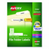 This is the mark of a true professional. Use these file folder labels with TrueBlock® technology to give ordinary folders a clean, organized look that's easy to identify. These innovative labels are designed to completely cover everything underneath, from markings to old, existing labels. Plus, these labels are guaranteed to stick and stay, without curling or lifting. And with free templates from Avery® Design & Print you can put smart label design in plain view, or add your own custom colors to create your own filing system. Simply type in text to identify folders or documents. After printing, you'll have professional-looking labels that you can spot right away. 8 1/2" x 11" sheets for laser and inkjet printers.
