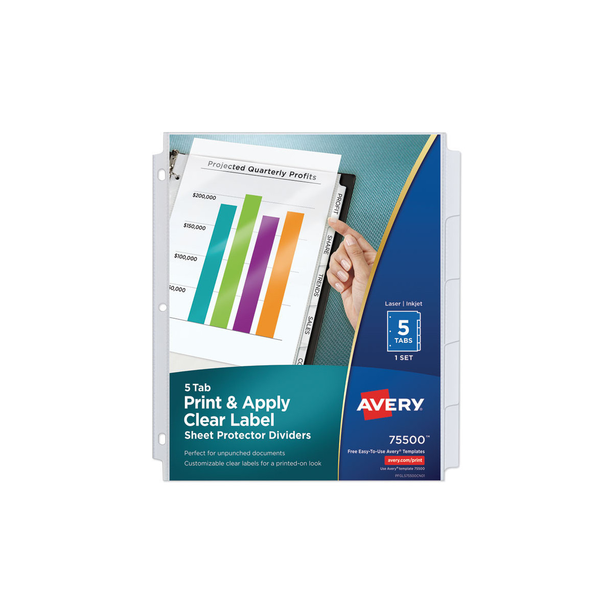 Index Maker® Dividers make organization easier. Whether you're coordinating a single project or multiple binder sets, these dividers let you get it done quickly and easily, with professional results. Pockets provide room for colorful section title pages or handouts. The clear labels virtually disappear on the tabs, giving your dividers a clean, printed-on look. Save time with the Easy Apply™ strip that lets you label all the tabs at once, making it simple to create custom dividers right from your desktop. Easy to customize with free templates at Avery Design & Print—personalize your Easy Apply™ tab labels in minutes. These dividers are a great solution for all of your organizing needs. For laser and inkjet printers.