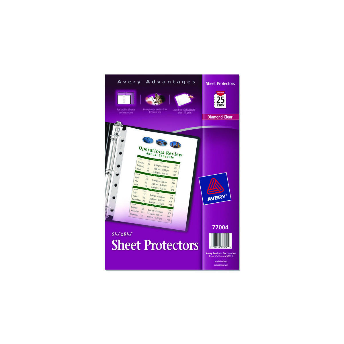 The solution to keeping your important papers protected is clear—diamond clear, in fact. These Heavyweight Sheet Protectors are designed both to protect your papers and show them off impressively. Diamond-clear material delivers a crisp view of your pages as well as durable protection. The acid-free and archival-safe material ensures your pages stay in top condition and that print remains on your papers, rather than transferring to the sheet protector. The clear binding edge rounds out the professional look of your presentations and other documents. Protects seven-hole punched 5 1/2" x 8 1/2" inserts.