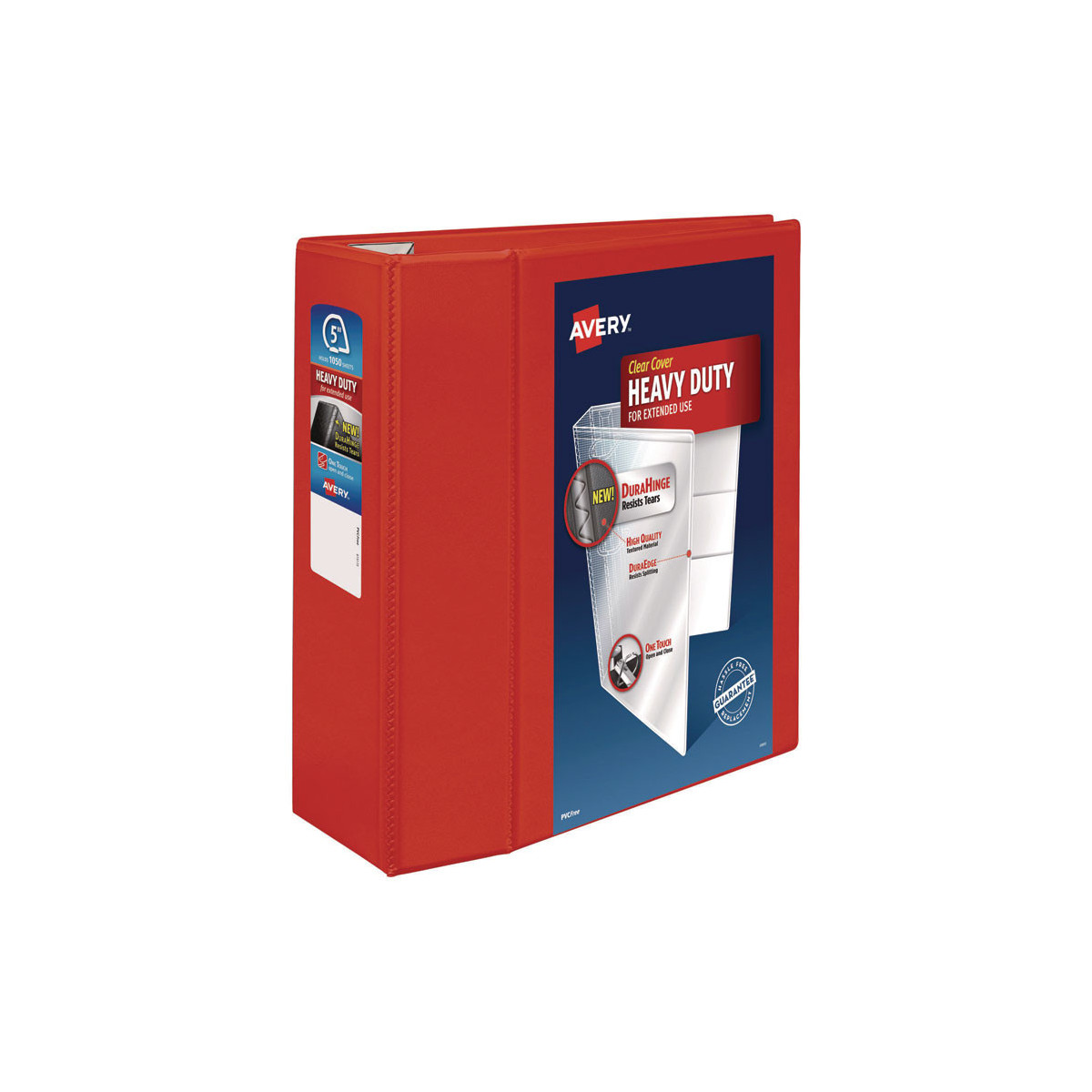 Heavy-Duty View Binder with DuraHinge and Locking One Touch EZD Rings, 3 Rings, 5" Capacity, 11 x 8.5, Red