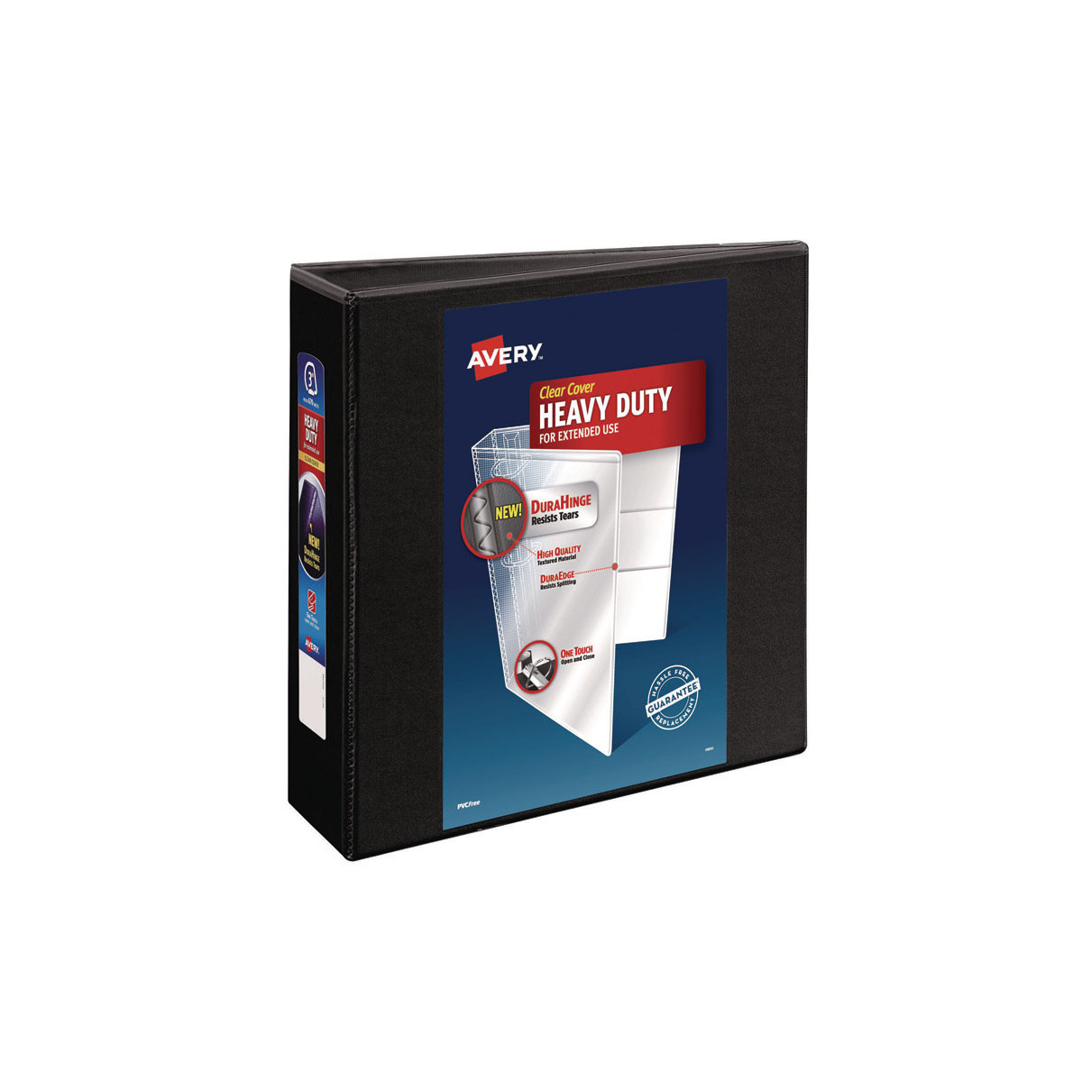 Heavy-Duty view binder with one touch EZD rings is perfect for long-term, regular use. Tear-resistant DuraHinge design is stronger and lasts longer. DuraEdge feature makes the sides and top more pliable, providing greater split resistance. Deep-textured film offers a smoother finish and features a linen pattern for a high-quality look and feel. Clear cover and spine for easy customization. Four clear, interior pockets provide extra storage space. Wider front and back panels fully cover standard dividers and sheet protectors. One touch EZD rings provide easy access and have a higher page capacity when compared to the same size round rings. Customize the cover with free, easy-to-use templates and designs at Avery Design & Print online.