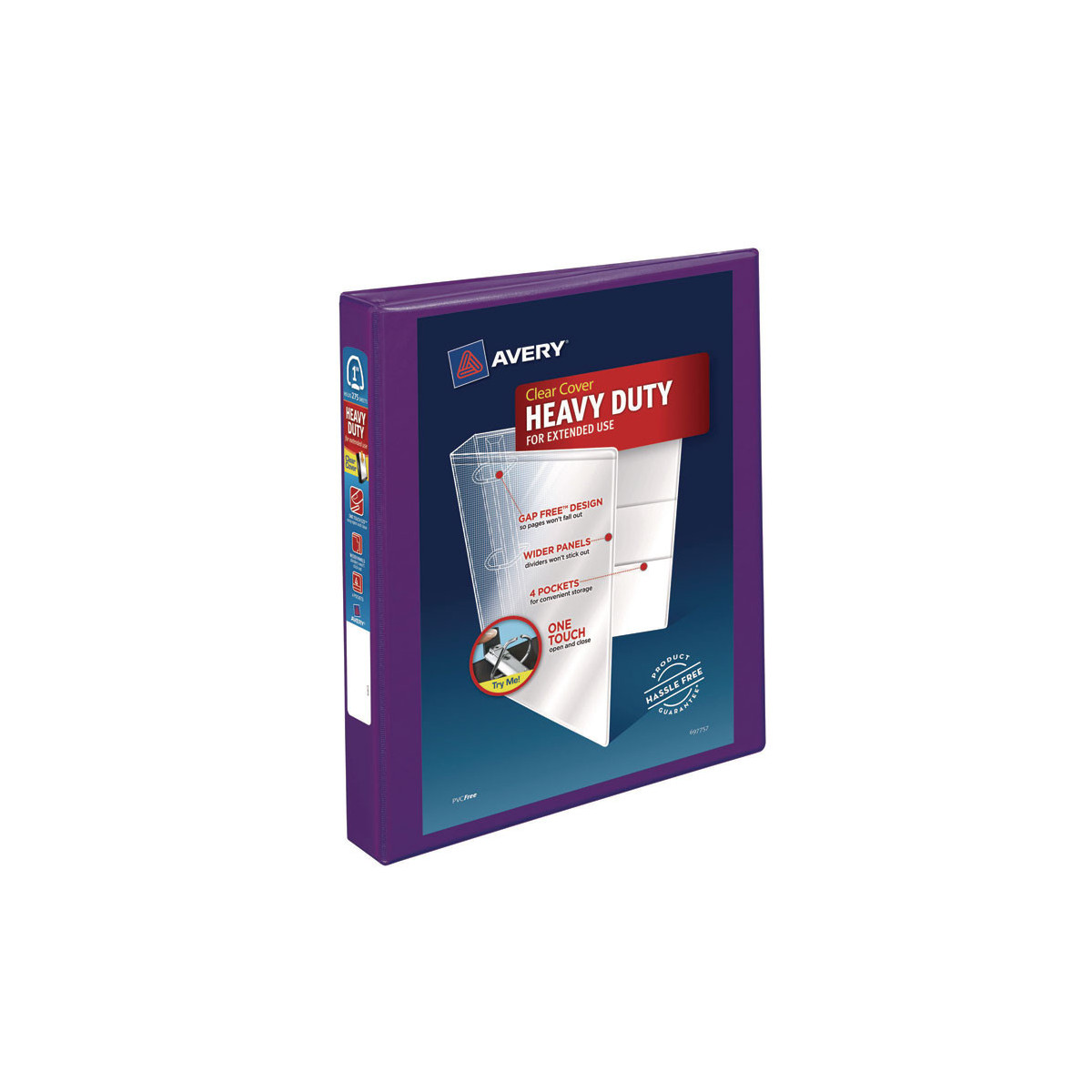Heavy-Duty view binder with one touch EZD rings is perfect for long-term, regular use. Tear-resistant DuraHinge design is stronger and lasts longer. DuraEdge feature makes the sides and top more pliable, providing greater split resistance. Deep-textured film offers a smoother finish and features a linen pattern for a high-quality look and feel. Clear cover and spine for easy customization. Four clear, interior pockets provide extra storage space. Wider front and back panels fully cover standard dividers and sheet protectors. One touch EZD rings provide easy access and have a higher page capacity when compared to the same size round rings. Customize the cover with free, easy-to-use templates and designs at Avery Design & Print online.