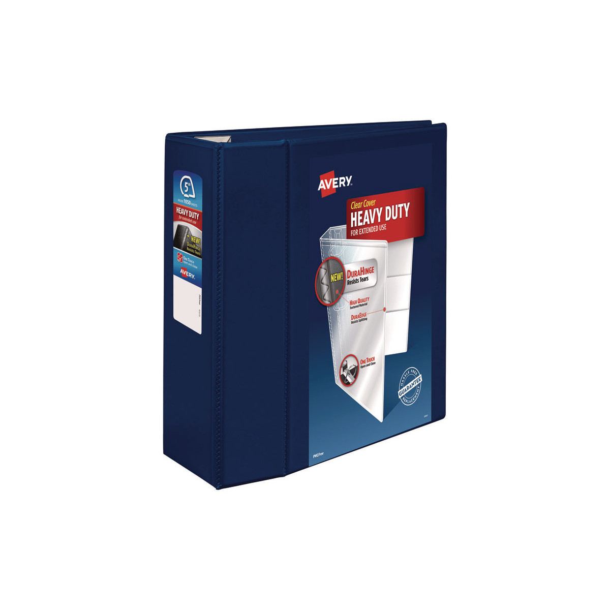 Heavy-Duty view binder with one touch EZD rings is perfect for long-term, regular use. Tear-resistant DuraHinge design is stronger and lasts longer. DuraEdge feature makes the sides and top more pliable, providing greater split resistance. Deep-textured film offers a smoother finish and features a linen pattern for a high-quality look and feel. Clear cover and spine for easy customization. Four clear, interior pockets provide extra storage space. Wider front and back panels fully cover standard dividers and sheet protectors. One touch EZD rings provide easy access and have a higher page capacity when compared to the same size round rings. Customize the cover with free, easy-to-use templates and designs at Avery Design & Print online.