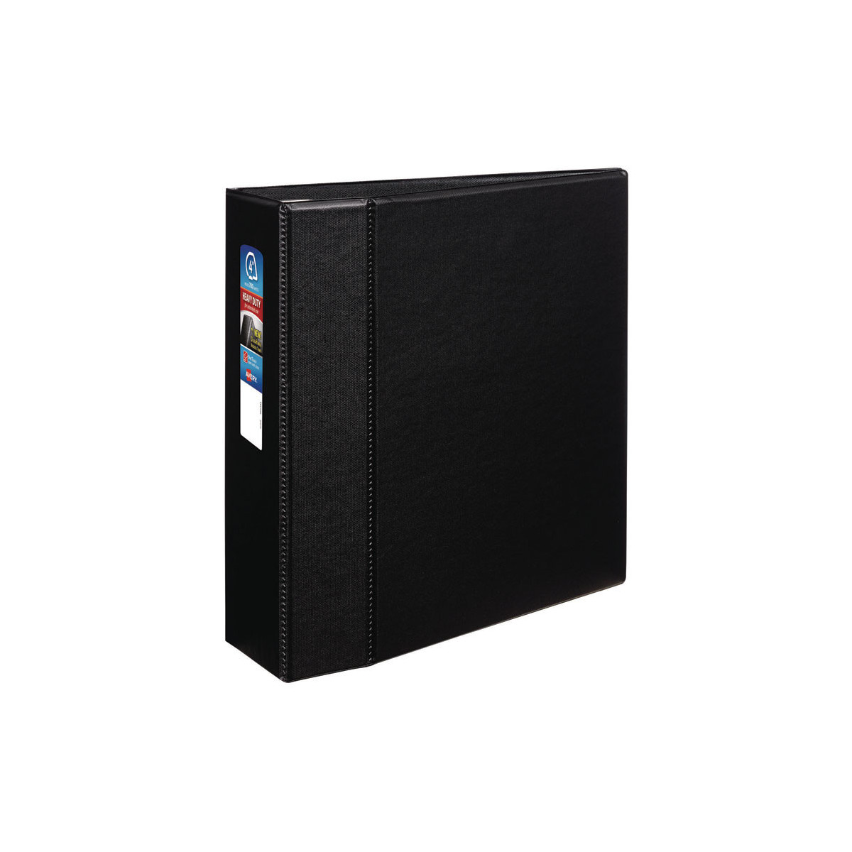 Heavy-duty binders for extended use. Tear-resistant DuraHinge® design is stronger and lasts longer. DuraEdge feature makes the sides and top more pliable, providing greater split resistance. Deep texture film offers a smoother finish and features a linen pattern for a high-quality look and feel. Four clear, interior pockets provide extra storage space. Wider front and back panels fully cover standard dividers and sheet protectors. One Touch slant rings open with ease, keep pages secure and have a higher page capacity compared to the same size round rings. Pages lie flat with back-mounted rings for a clean spine. Binders are made out of heavy-duty, non-stick poly material and won't lift ink or toner off printed pages.