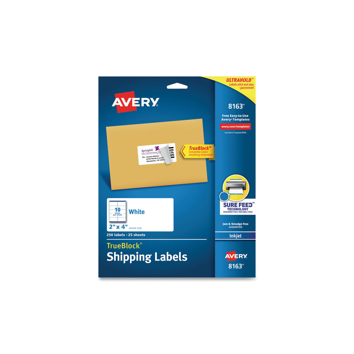 Shipping Labels w/ TrueBlock Technology, Inkjet Printers, 2 x 4, White, 10/Sheet, 25 Sheets/Pack
