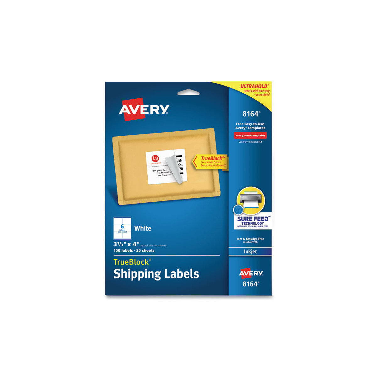 Shipping Labels w/ TrueBlock Technology, Inkjet Printers, 3.33 x 4, White, 6/Sheet, 25 Sheets/Pack