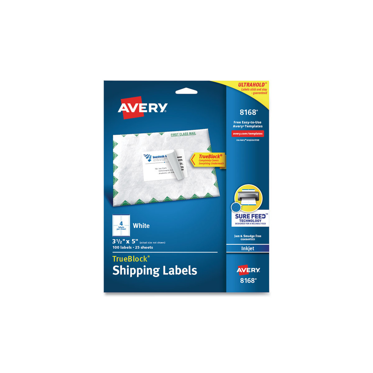 Shipping Labels w/ TrueBlock Technology, Inkjet Printers, 3.5 x 5, White, 4/Sheet, 25 Sheets/Pack