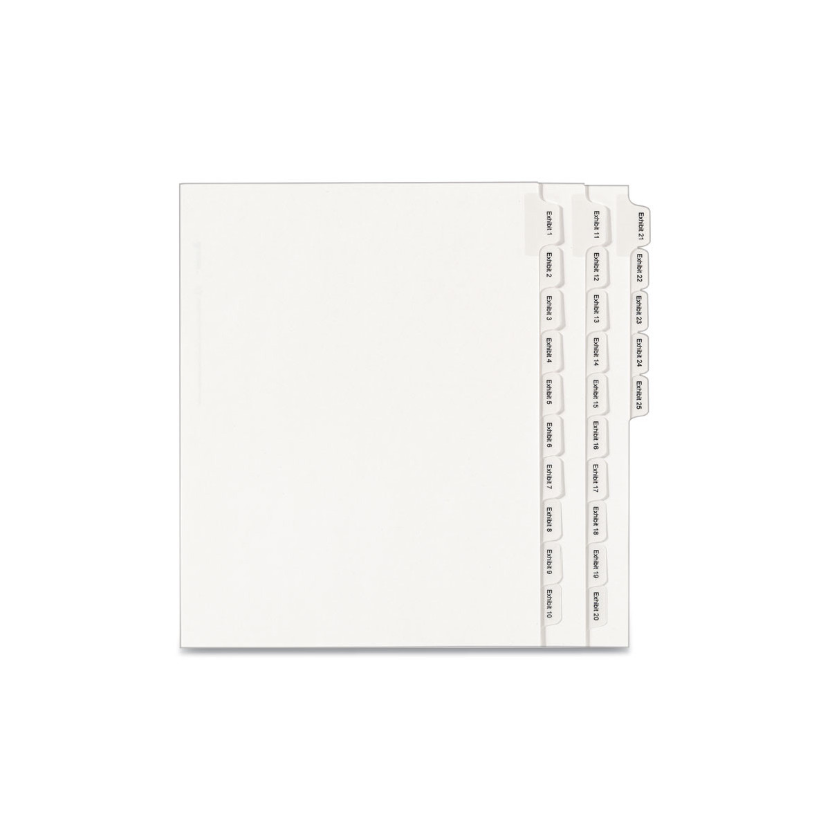 Use these dividers to organize index briefs, legal exhibits, mortgage documentation files and more. The crisp and clean white paper stock dividers give files a professional appearance. The durable Rip Proof™ reinforced tabs are preprinted on both sides so information can be located easily. The unpunched binding edges mean these indexes can fit practically any binding system.