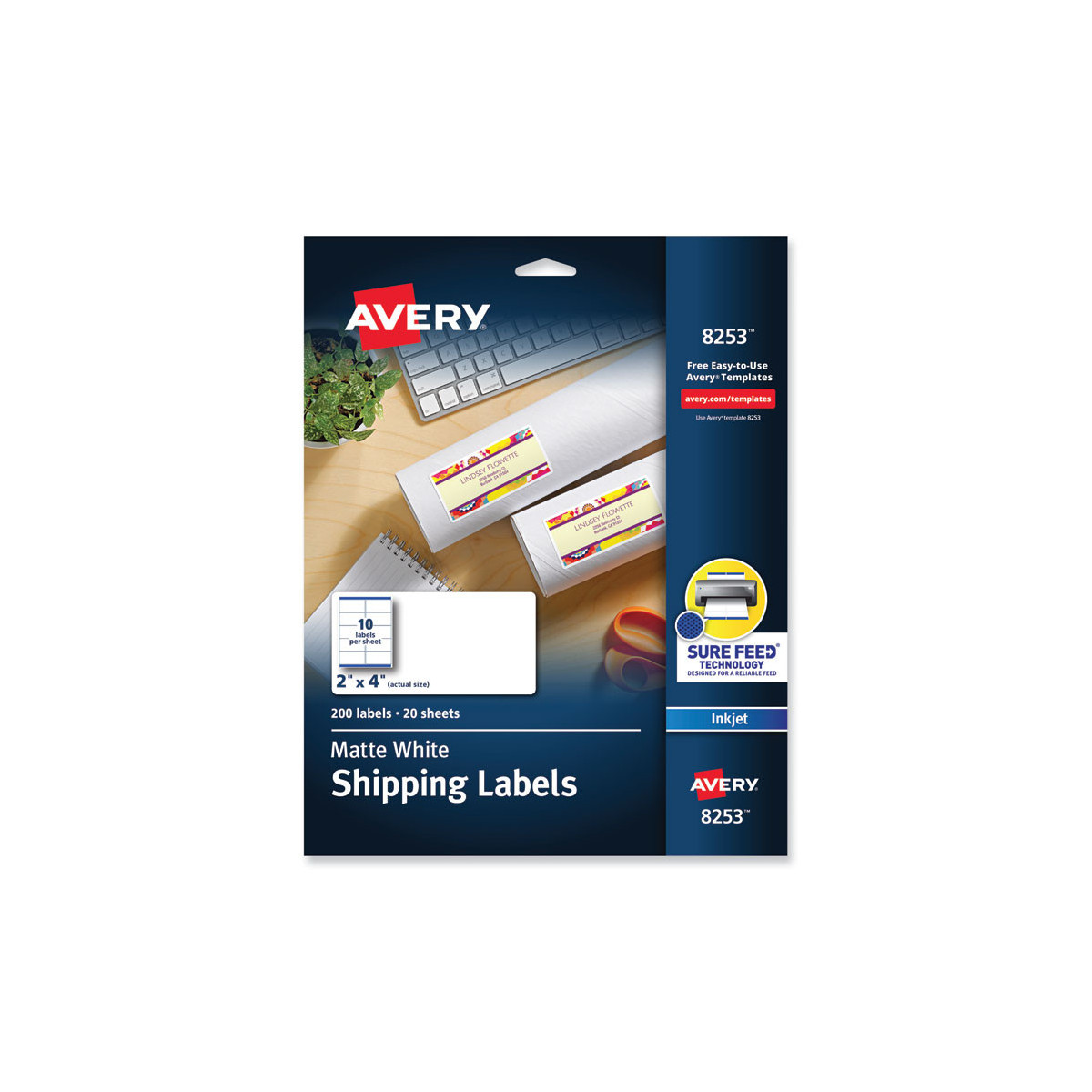 Vibrant Inkjet Color-Print Labels w/ Sure Feed, 2 x 4, Matte White, 200/PK