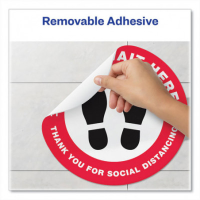 Help your customers keep a safe distance. Featuring a preprinted message on a vinyl surface with a semigloss finish, it is an intuitive and easy way to direct foot traffic. Designed to withstand everyday wear and tear, this anti-slip and water-resistant floor decal is also scuff-resistant and UV-coated for additional durability. Able to stick and stay but also peels away cleanly, it is removable and easy to reposition for the right spacing and placement. Perfect for retail stores, restaurants, hair salons, banks, airports, and more.