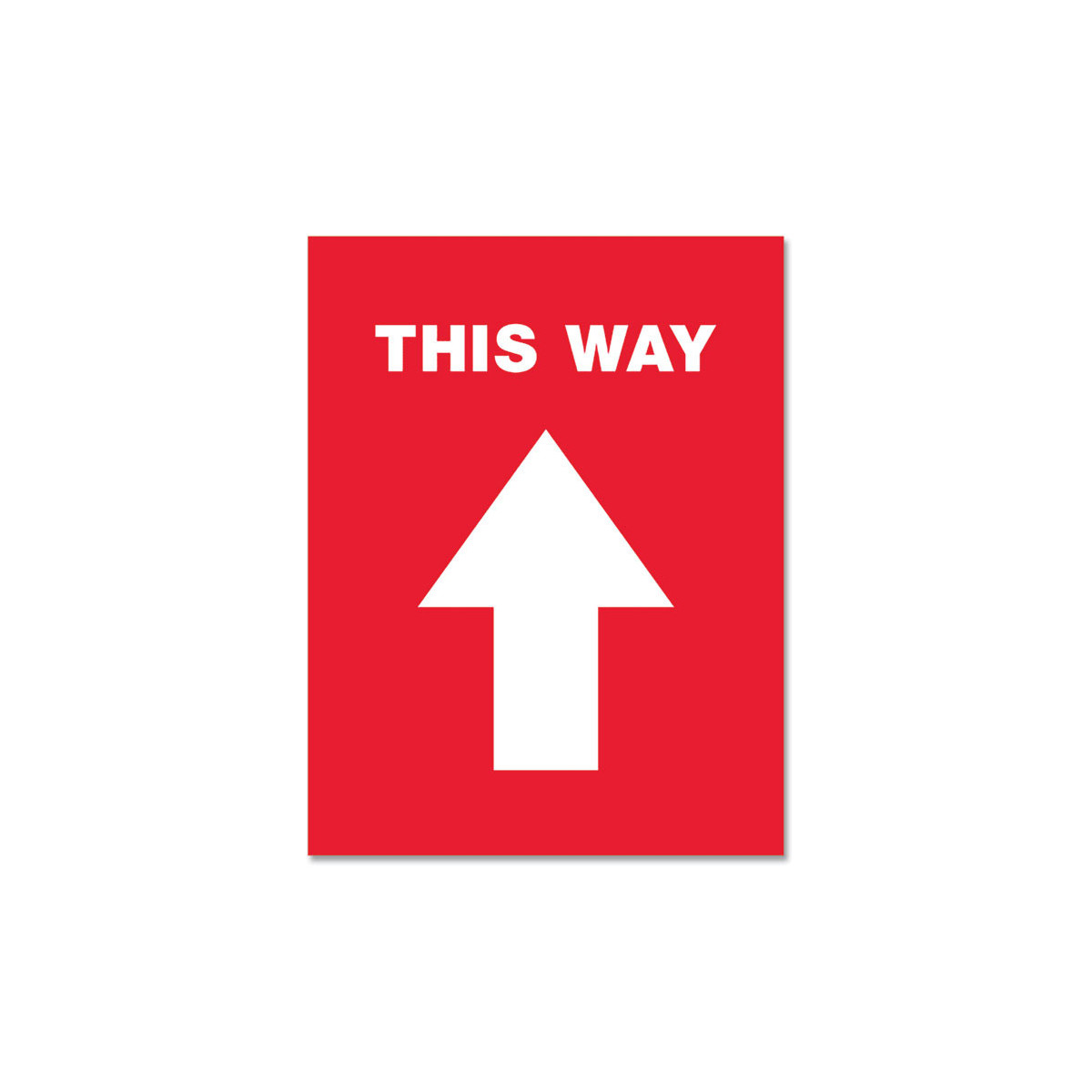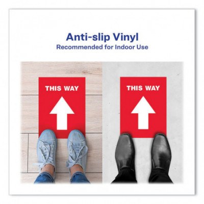 Social Distancing Floor Decals, 8.5 x 11, This Way, Red Face, White Graphics, 5/Pack