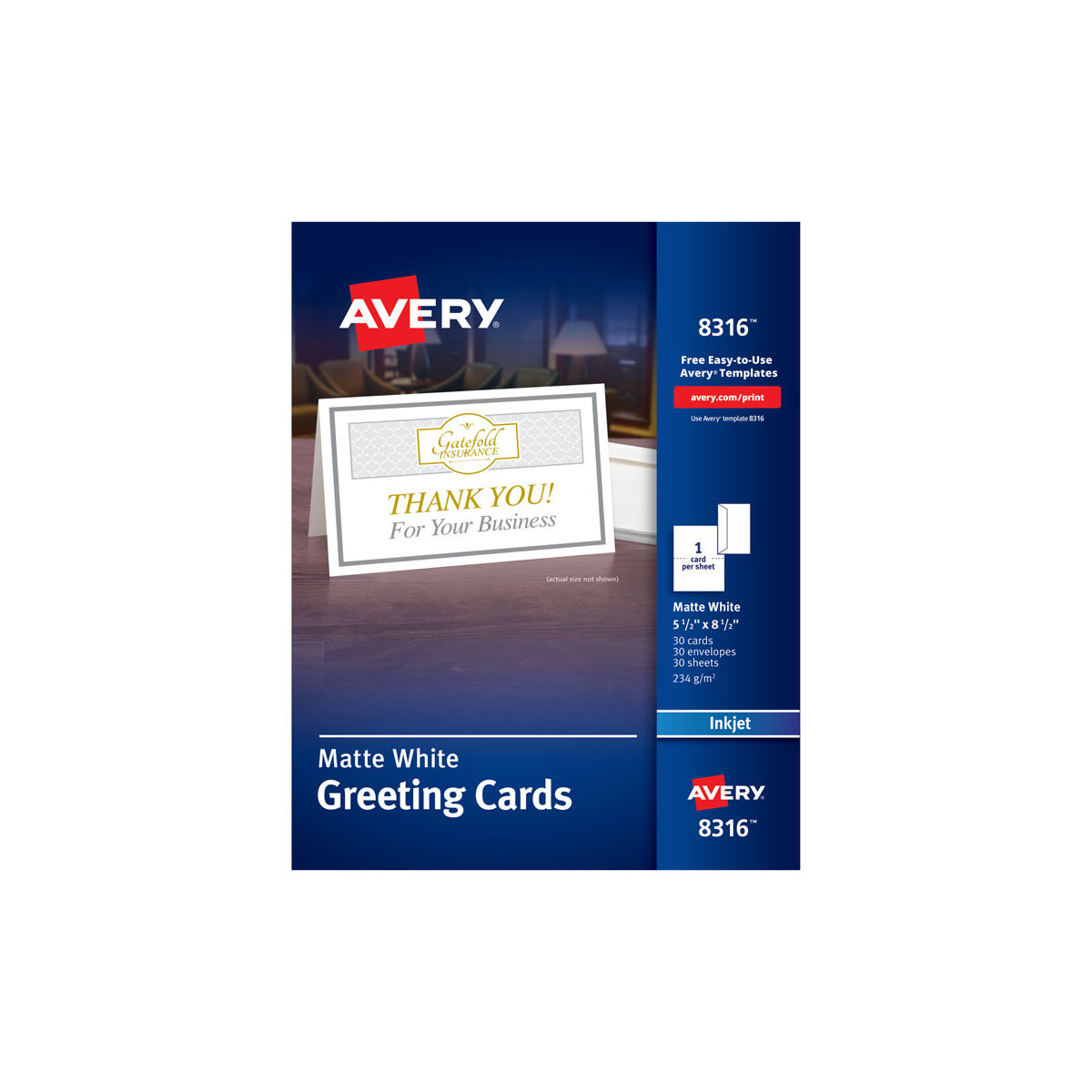 So you're fond of receiving invitations or season's greetings in the mail? Return the favor with a message of your own with these printable Greeting Cards. To get started, check out the wide selection of free designs and templates on Avery Design & Print or use your favorite digital photos for a personal touch. Design in portrait or landscape orientation and feed heavyweight card stock through your printer and watch as the high-resolution color makes images come to life. Cards are scored for easy folding and come with matching envelopes. Few things say "thinking of you" quite like a custom-made card. 8.5" x 11" sheets for inkjet printers.