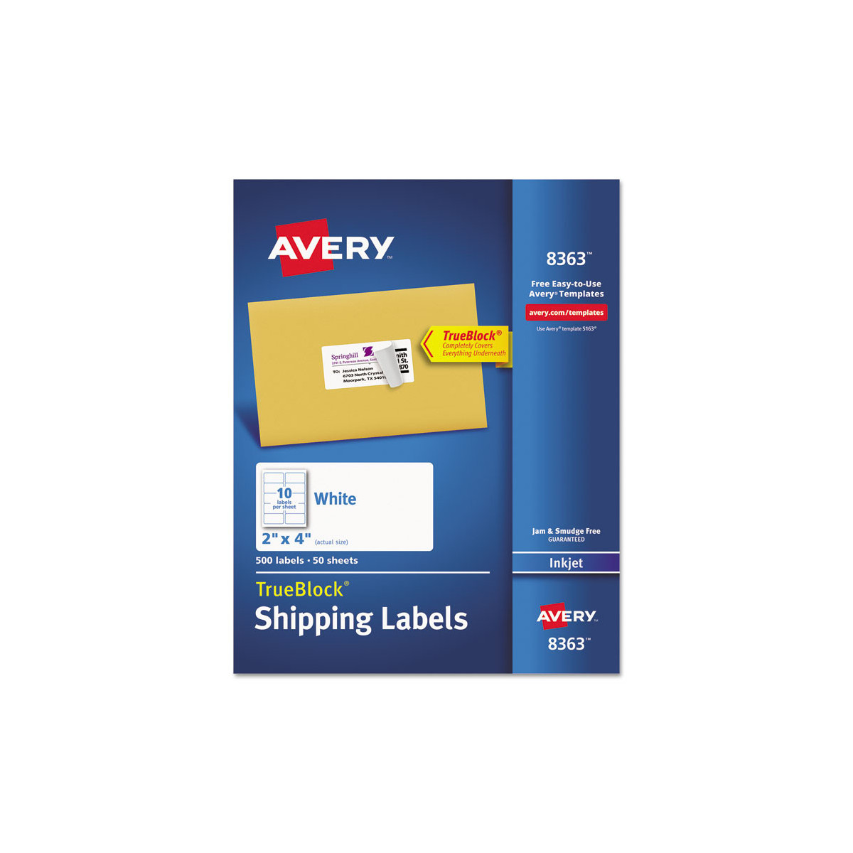 Shipping Labels w/ TrueBlock Technology, Inkjet Printers, 2 x 4, White, 10/Sheet, 50 Sheets/Box