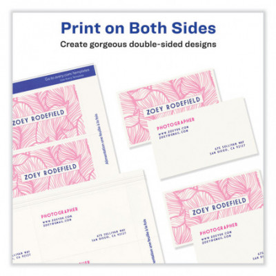 Design and print business cards, appointment cards and more. Card sheets with Sure Feed® technology are designed to prevent jams and misalignments. Sturdy cardstock with ultra-fine perforations is printable on both sides. Easy to customize with free designs and templates from Avery Design & Print. 8.5" x 11" sheets for laser and inkjet printers.