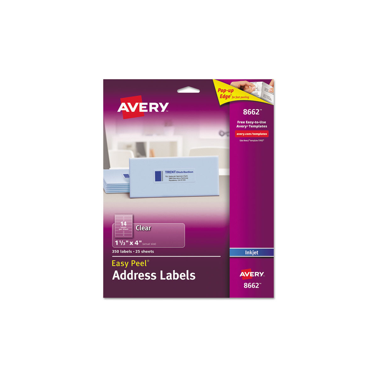 Matte Clear Easy Peel Mailing Labels w/ Sure Feed Technology, Inkjet Printers, 1.33 x 4, Clear, 14/Sheet, 25 Sheets/Pack
