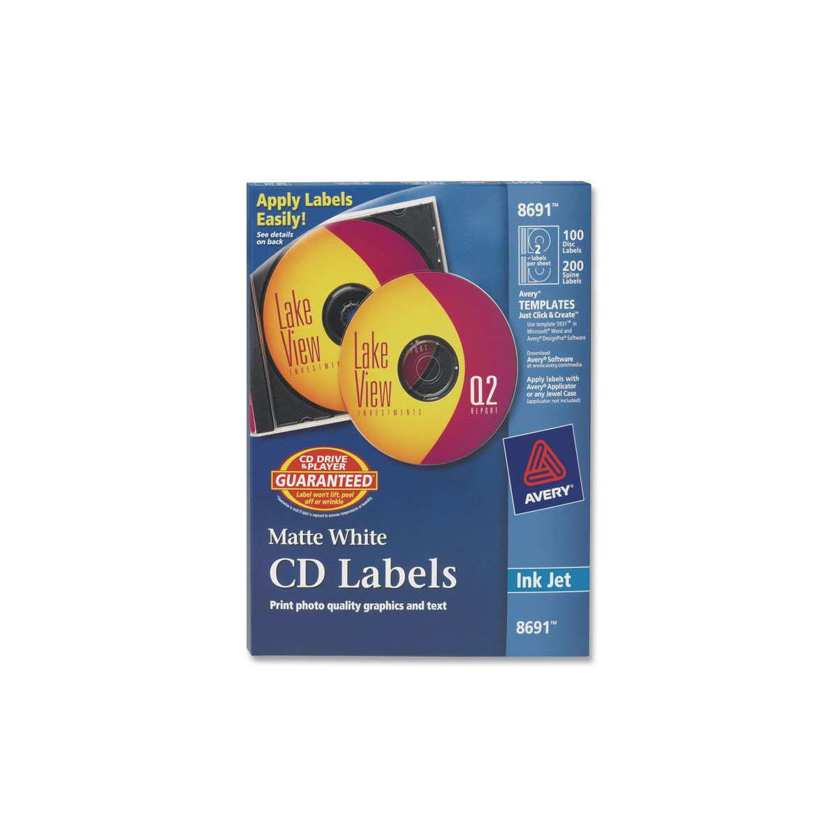 These CD labels allow you to create custom-made, professional-looking labels with a printed appearance for your business. Labels feature a unique, patented design which centers labels using a standard jewel case, and they're guaranteed not to lift, peel off or wrinkle. With free designs, QR codes, and templates from Avery® Design & Print, you can jazz up each label with high-resolution photos and graphics and then print them in minutes. 8.5" x 11" sheets.