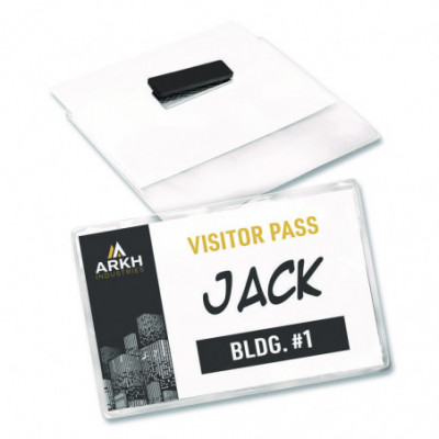 Strong, heavy-duty magnet holds name badge in place. Safe for any style of clothing without damaging material or flipping over. Features an easy-to-load pocket style design. Durable plastic is reusable and displays names clearly. Micro-perforated inserts separate cleanly, leaving smooth edges. Easy to customize with free designs and templates using Avery® Design & Print. 8.5 x 11 sheets for laser and inkjet printers.