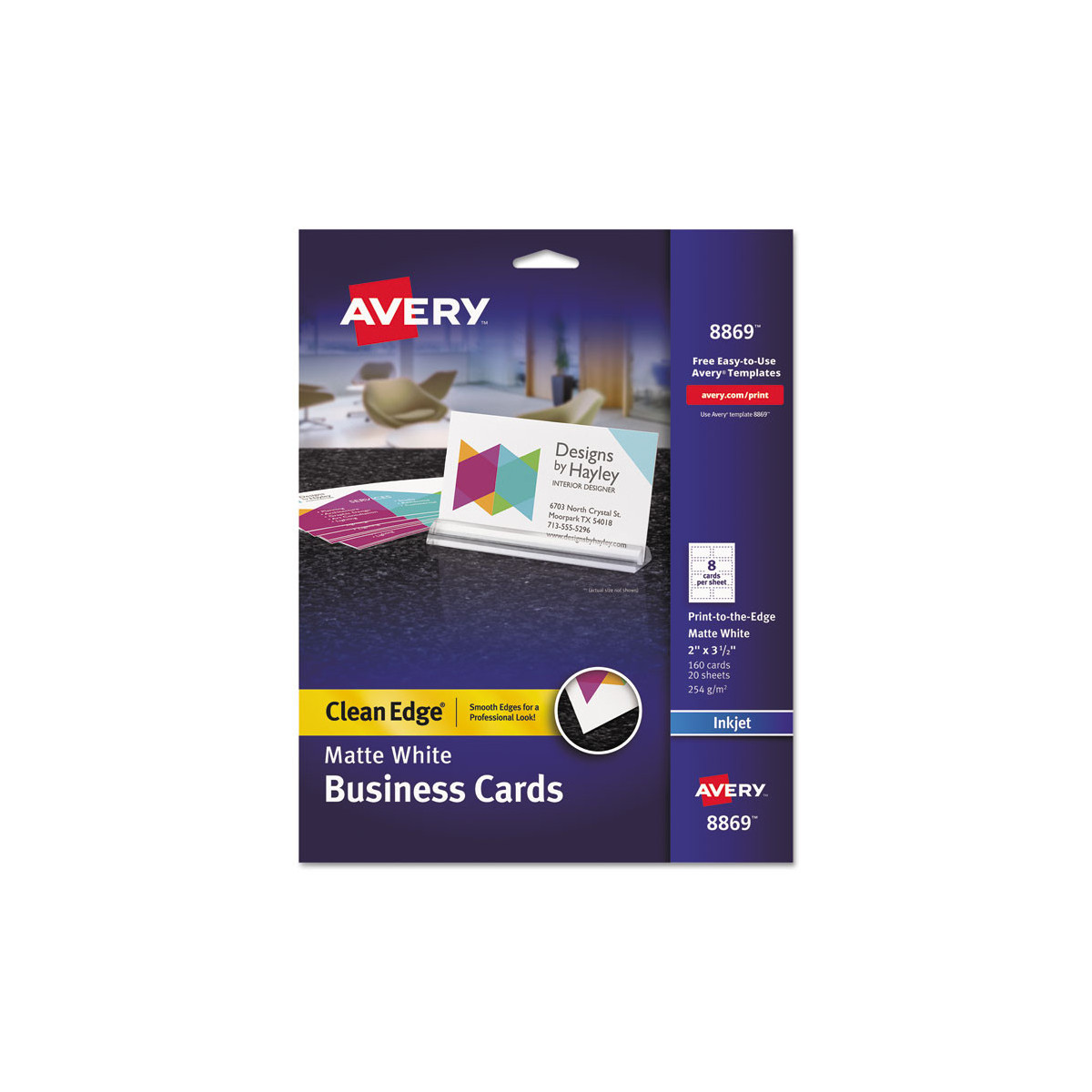 Design and print professional-looking business cards. Proprietary Clean Edge® technology ensures that cards snap apart with smooth edges. Print on both sides. Easy to customize with free designs and templates from Avery Design & Print. 8.5" x 11" sheets for laser or inkjet printers.