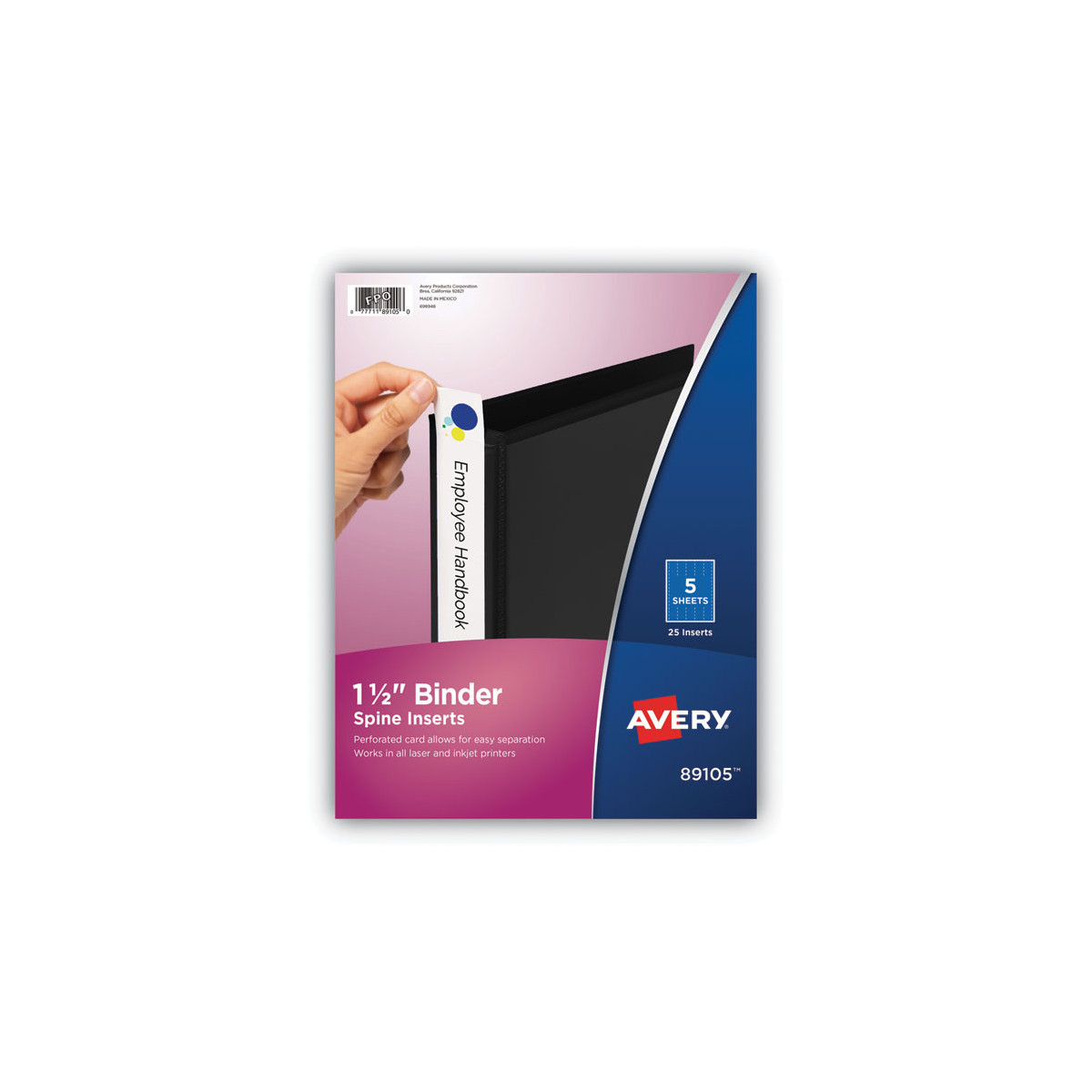 Create professional-looking spines with binder spine inserts using free templates from Avery Design & Print. Perforated cardstock allows for easy separation. Firm cardstock makes it even easier to insert each spine into a binder. 8.5" x 11" sheets for laser and inkjet printers.