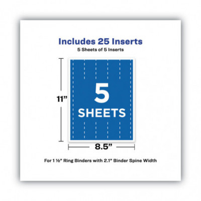 Binder Spine Inserts, 1.5" Spine Width, 5 Inserts/Sheet, 5 Sheets/Pack