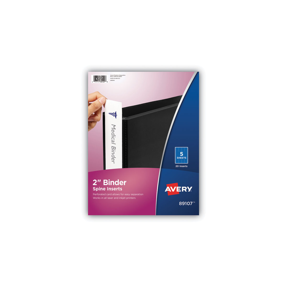Create professional-looking spines with binder spine inserts using free templates from Avery Design & Print. Perforated cardstock allows for easy separation. Firm cardstock makes it even easier to insert each spine into a binder. 8.5" x 11" sheets for laser and inkjet printers.